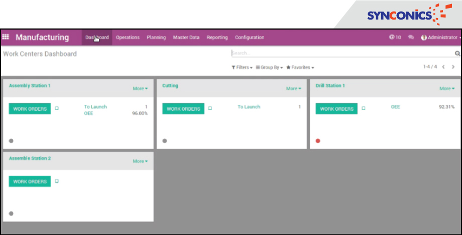 Now when we visit the work center dashboard again, we find that all the work centers are green implying everyone has work to do.