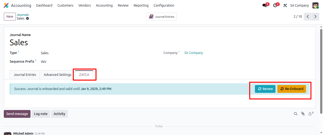 Under the ZATCA tab, you will have to onboard this journal with the ZATCA portal