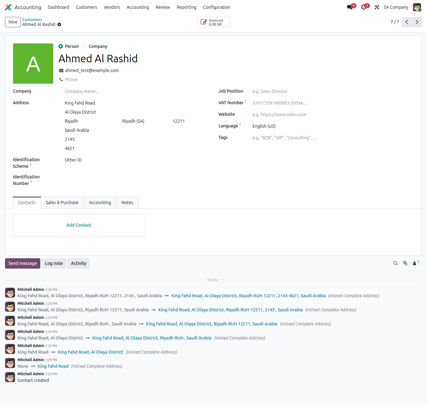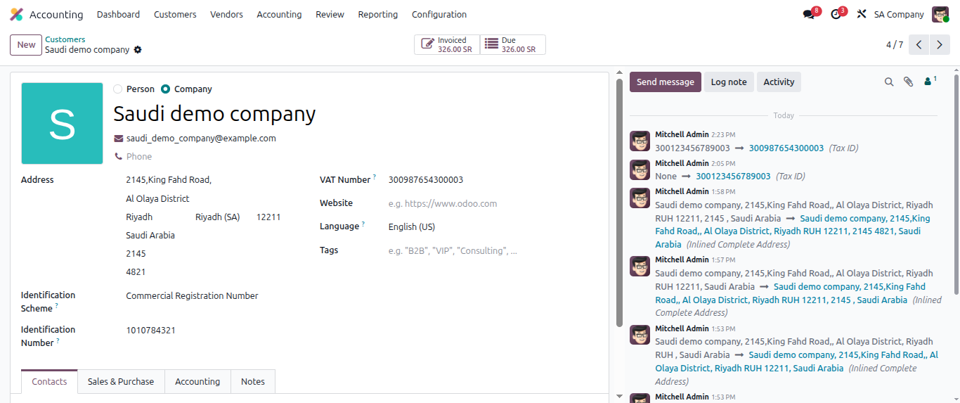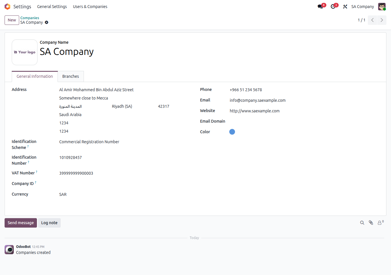 Your company should have a valid address, city, state, zip code, and country based in Saudi Arabia, along with a proper Building number and Plot number