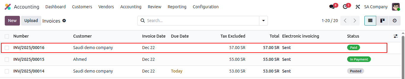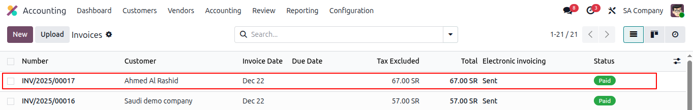 - Go to Invoicing/Accounting -> Customers -> Invoice