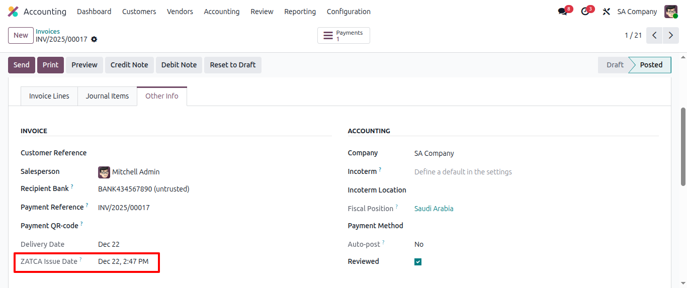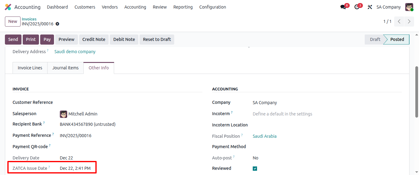 Key Features of Odoo ZATCA E-Invoicing Integration