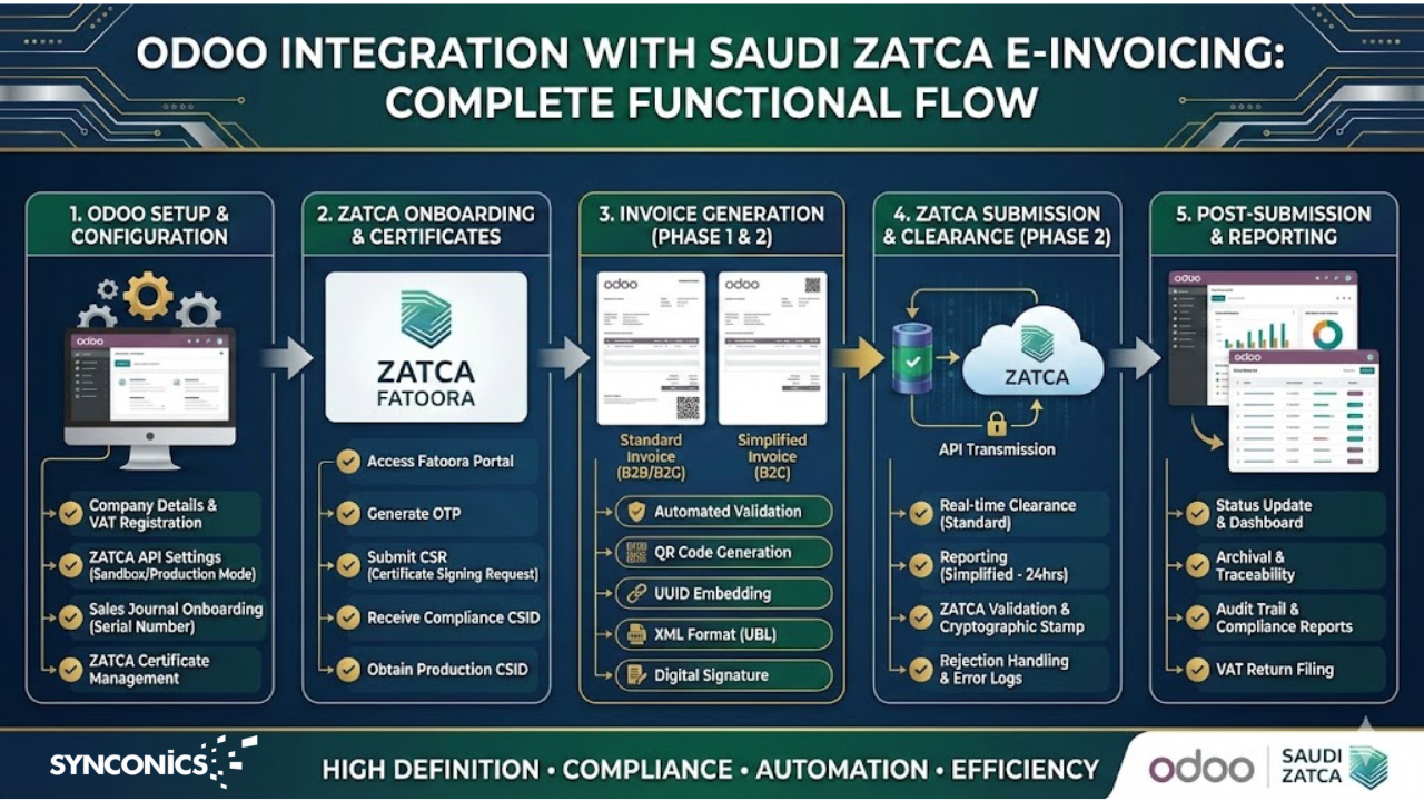 This blog explains what ZATCA e-invoicing is, how Odoo integrates with it, and why Odoo is one of the best ERP choices for Saudi businesses.
